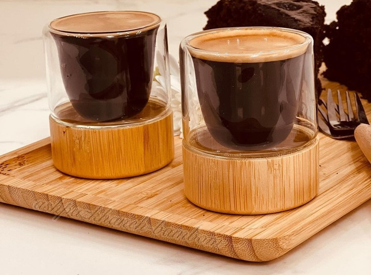 فنجون قهوه خوری پیرکس ۲جداره ارتفاع ۶سانت